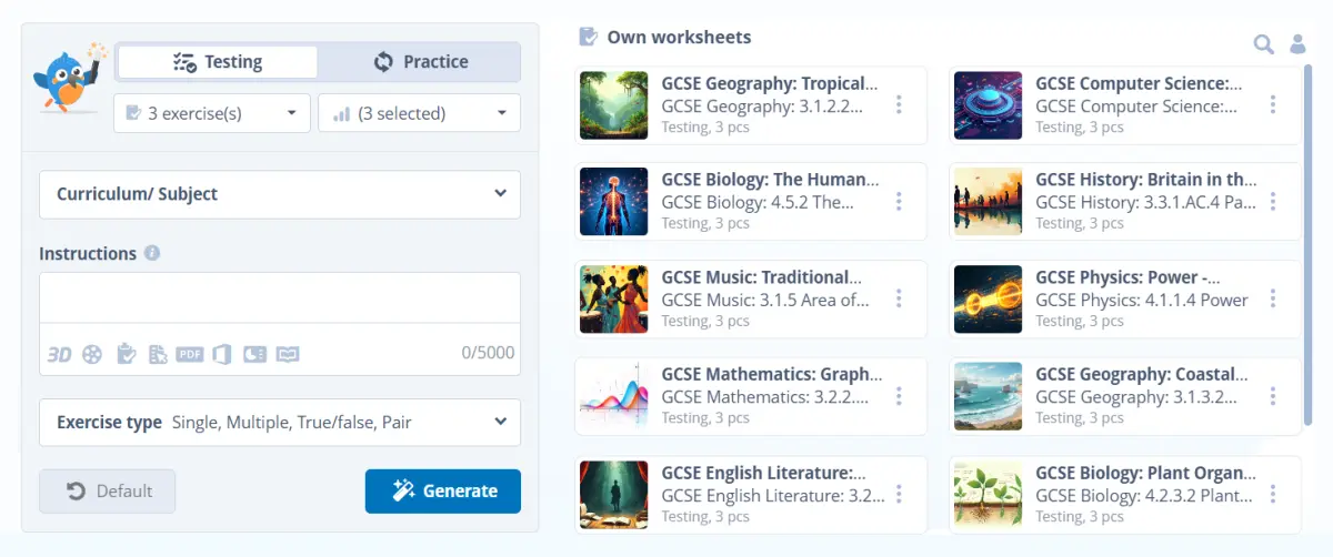 Using AI effectively depends on giving the right instructions. When generating worksheets with the Task Wizard, you'll receive guidance every step of the way.