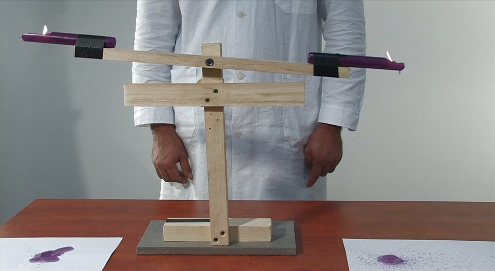 Let's see what happens when you fix two burning candles and then two bottles of water to a seesaw.