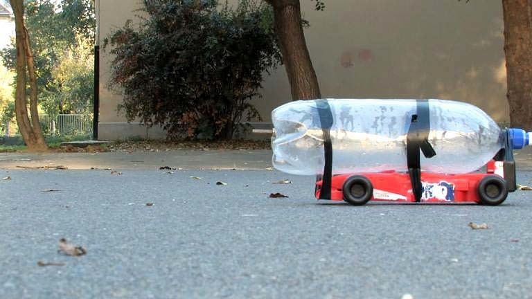 In this experiment, we create a toy car that can be propelled by air or water and air.