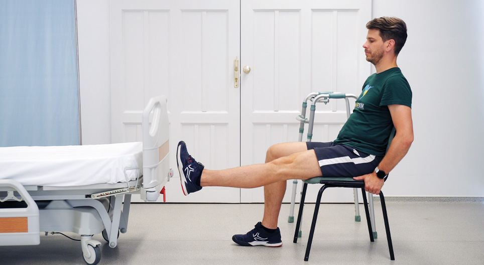 Simple rehabilitation exercises focusing on hip mobilization after injury or surgery, performed in standing or sitting positions.