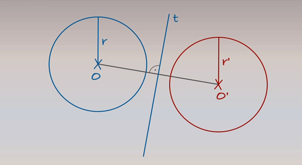 لدينا محور t ودائرة مركزها O ونصف قطرها r على مستوى واحد. دعونا نرسم صورة طبق الأصل من الدائرة.