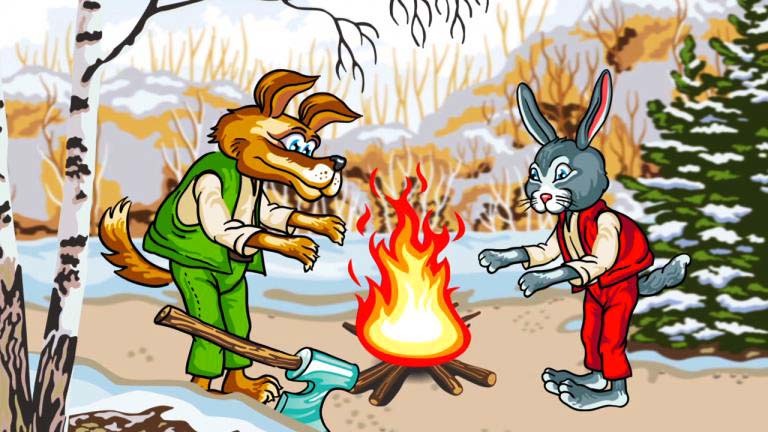 تشاجر الكلب والأرنب فيما بينهما مرة أثناء تقطيع الخشب، ومنذ ذلك الحين وهما غاضبان على بعضهما.