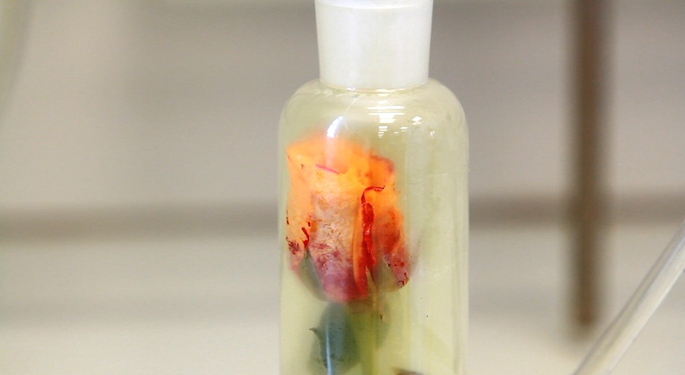 في هذه التجربة سوف نقوم بإزالة لون الوردة باستخدام غاز الكلور.